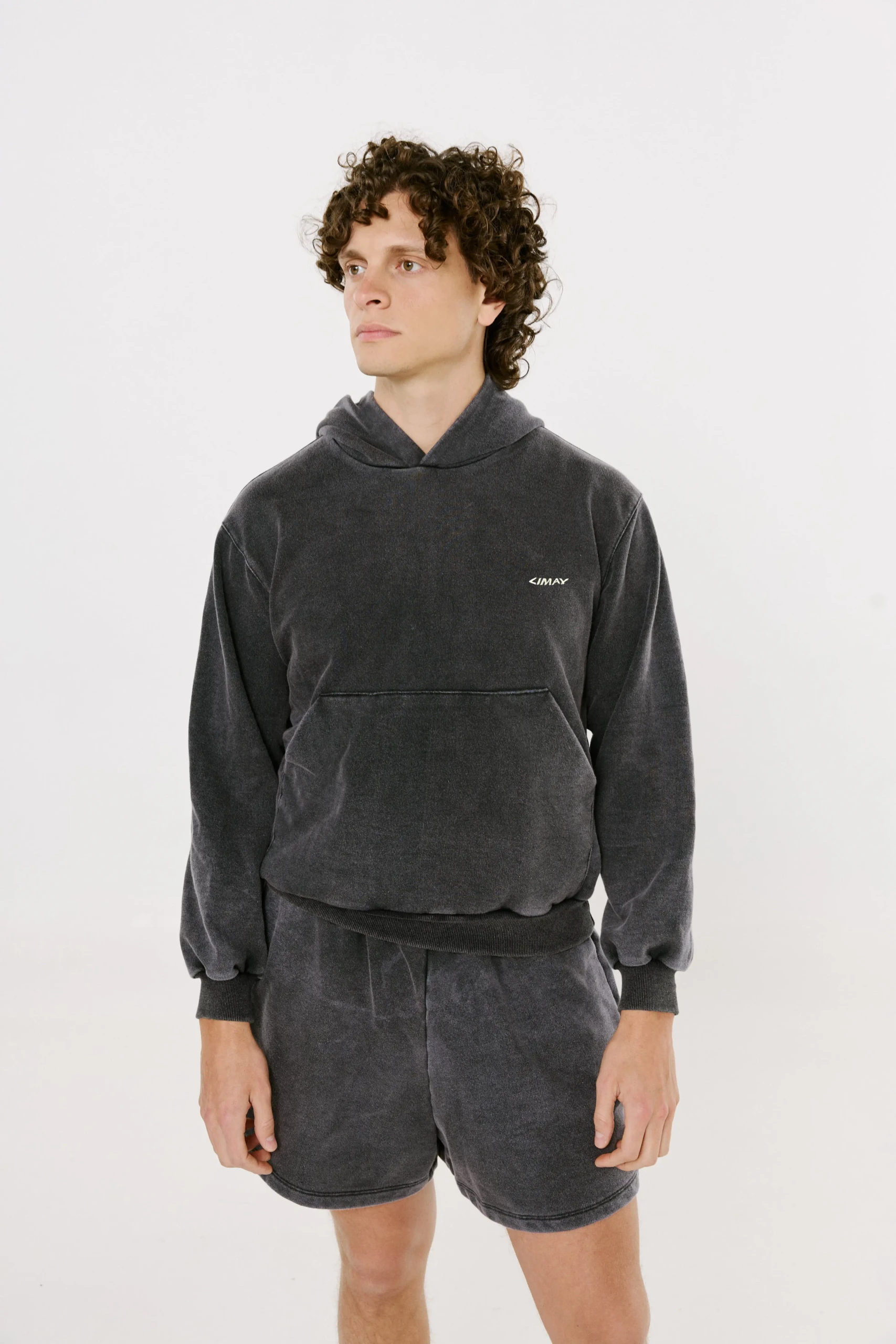 Buzo de rustico de algodón con capucha y bolsillo canguro.
