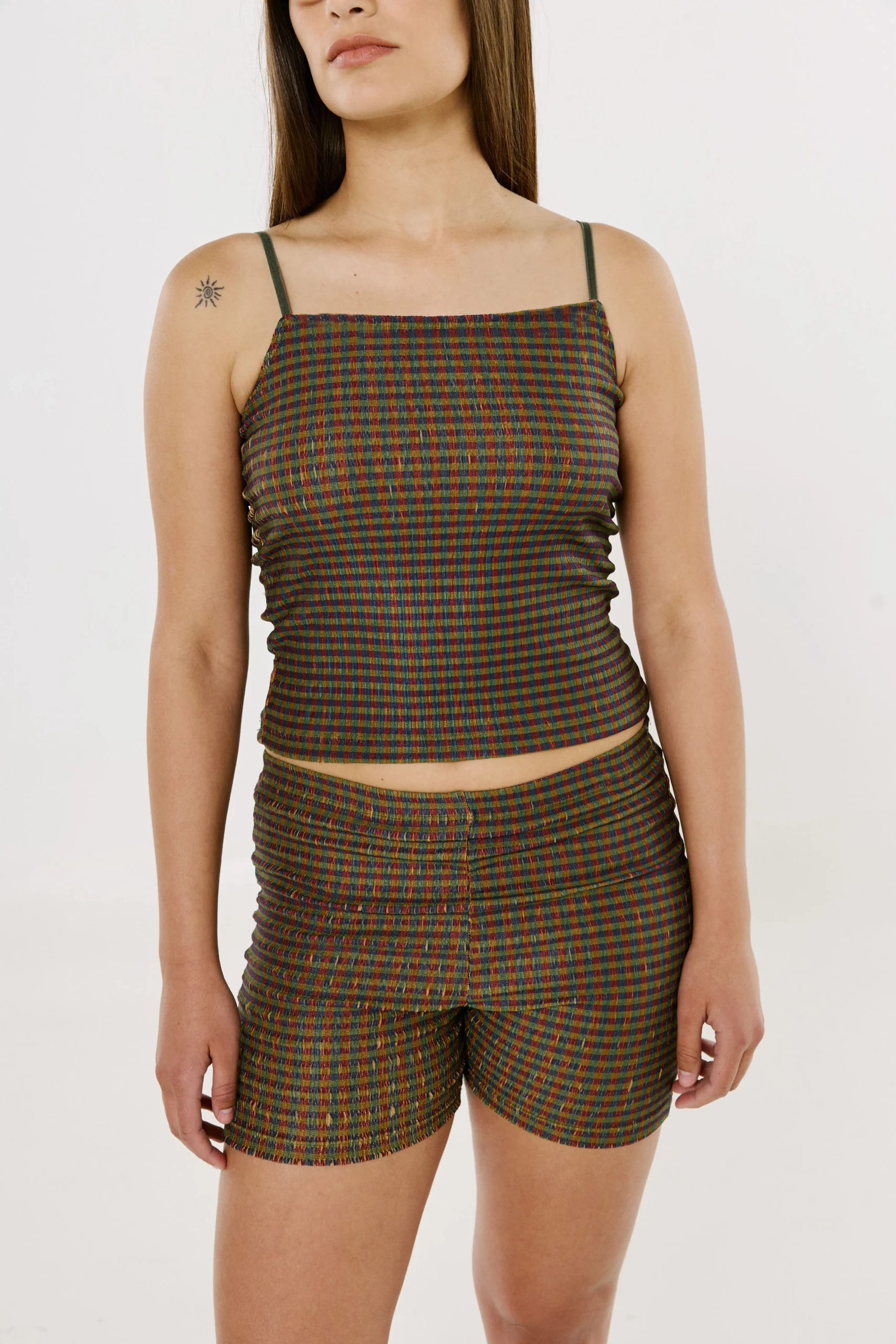 Calza corta tipo biker confeccionada en punto bambula de poliester estampado. Cintura elastizada.