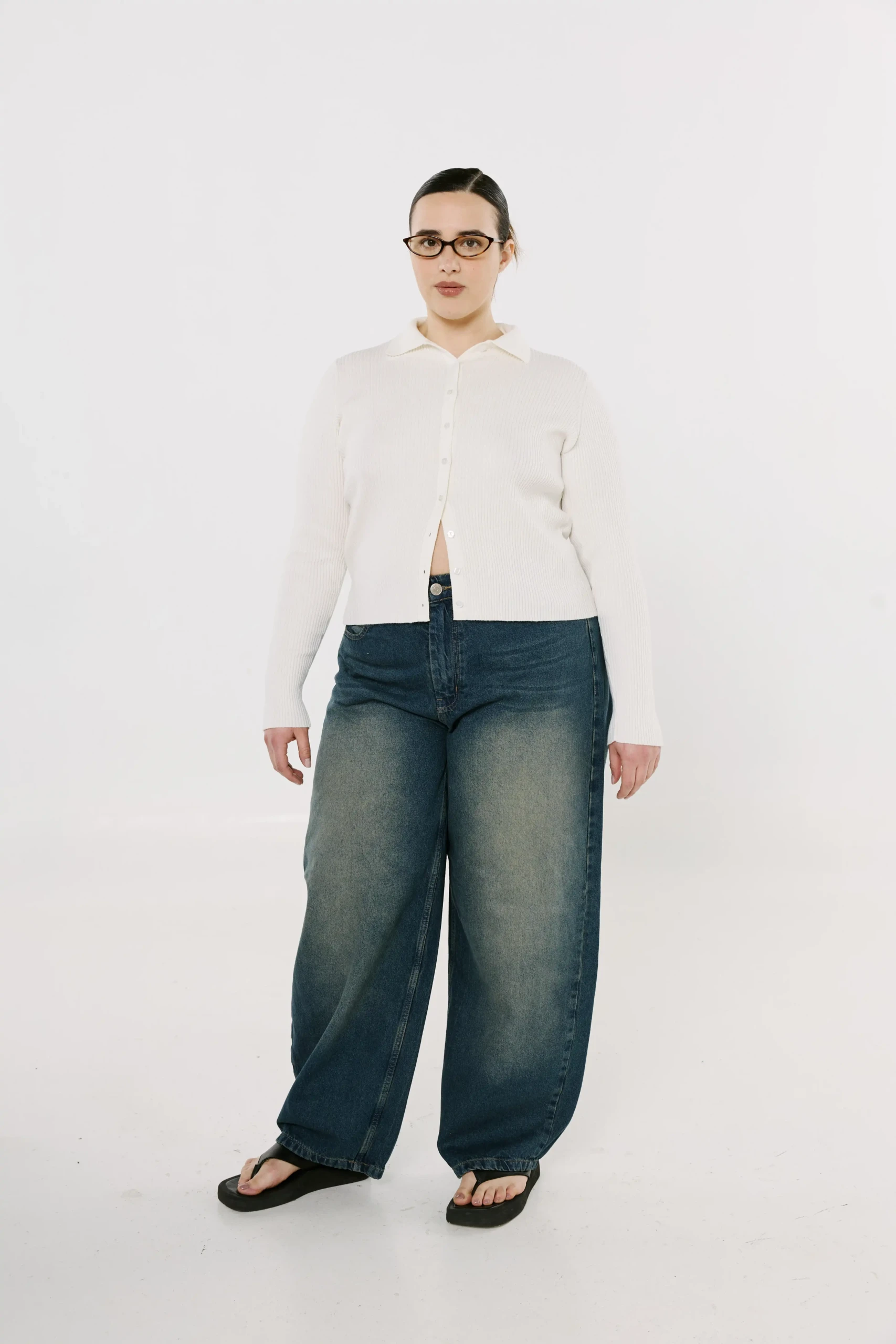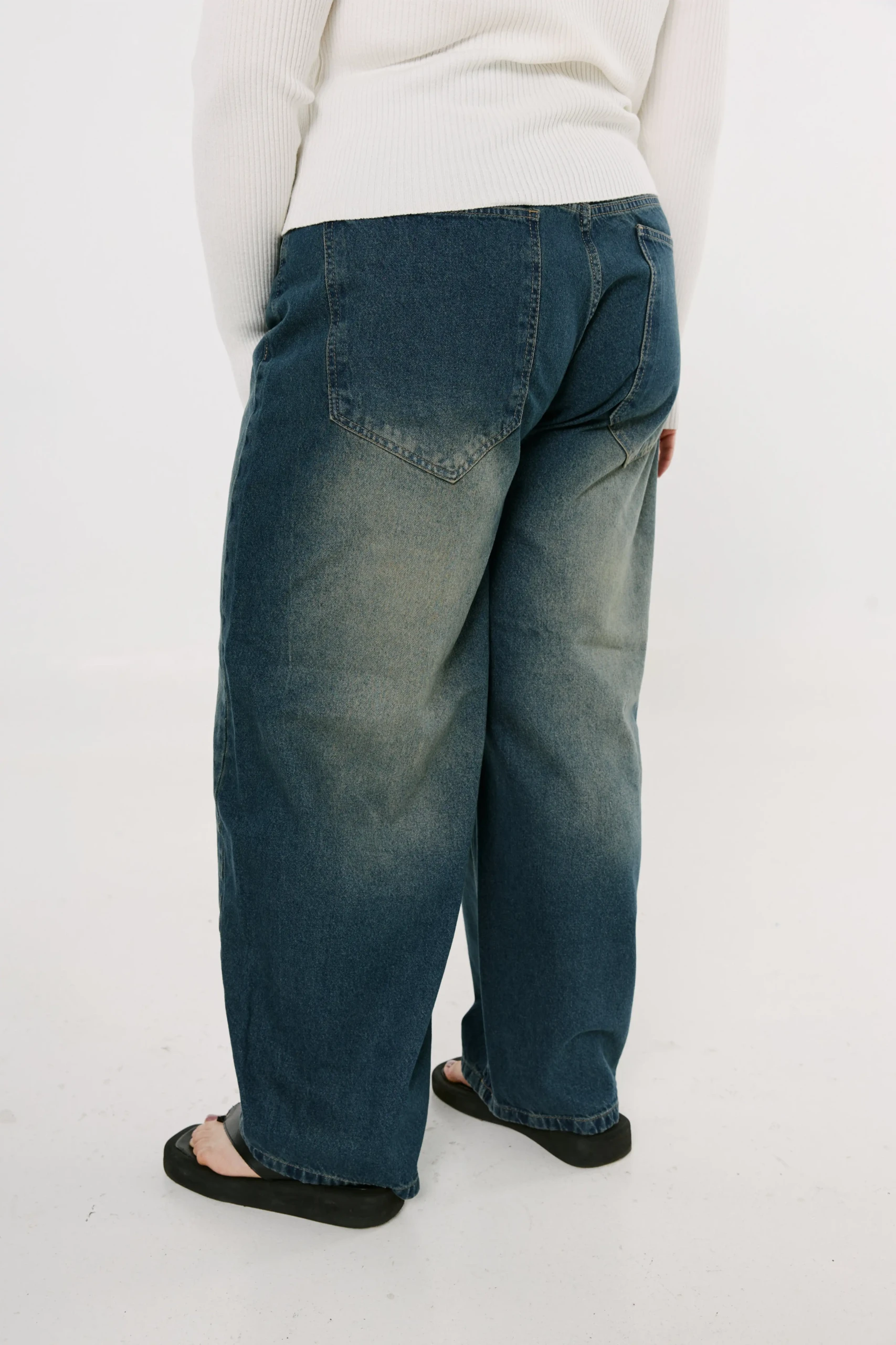 Jean oversize confeccionado en denim 100% algodón (11 oz) con costuras negras.
