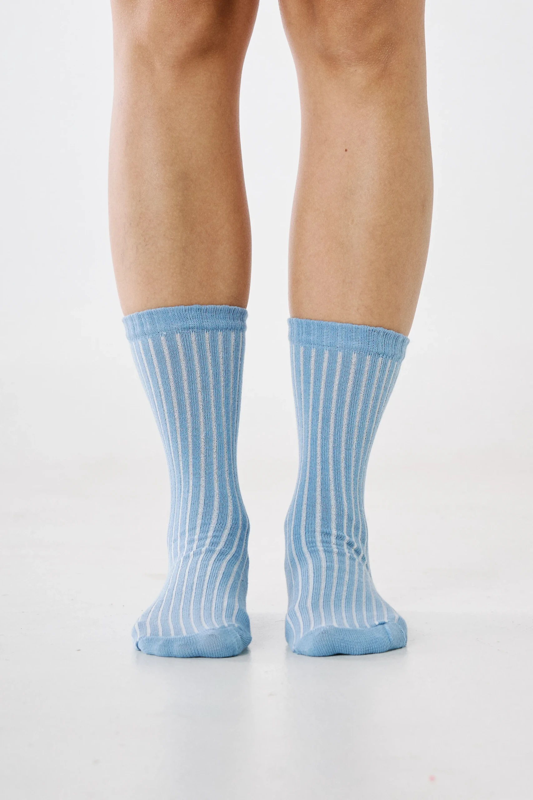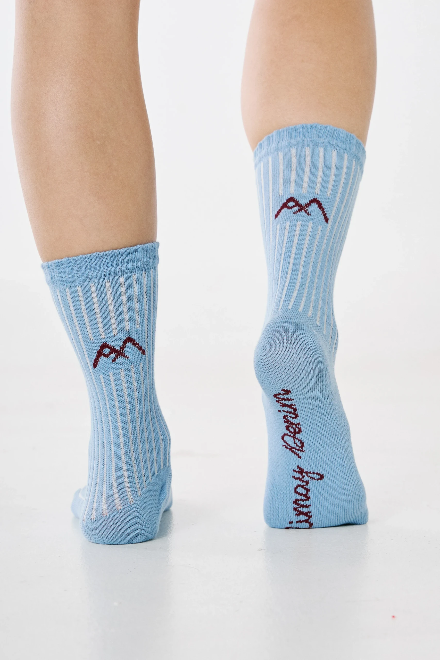 Medias básicas media caña acanaladas de algodón. Logo bordo tejido en pantorrilla y planta de pie.