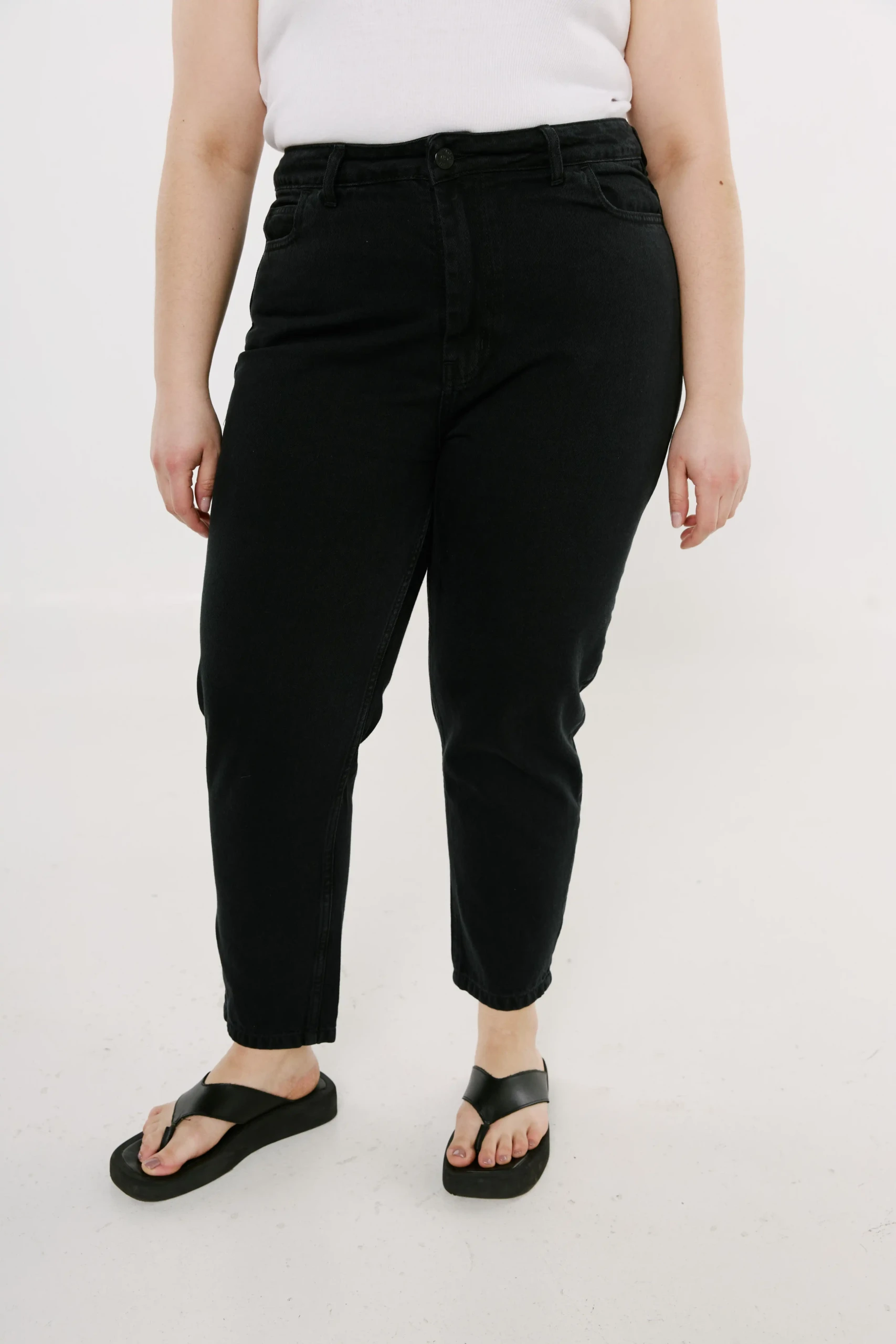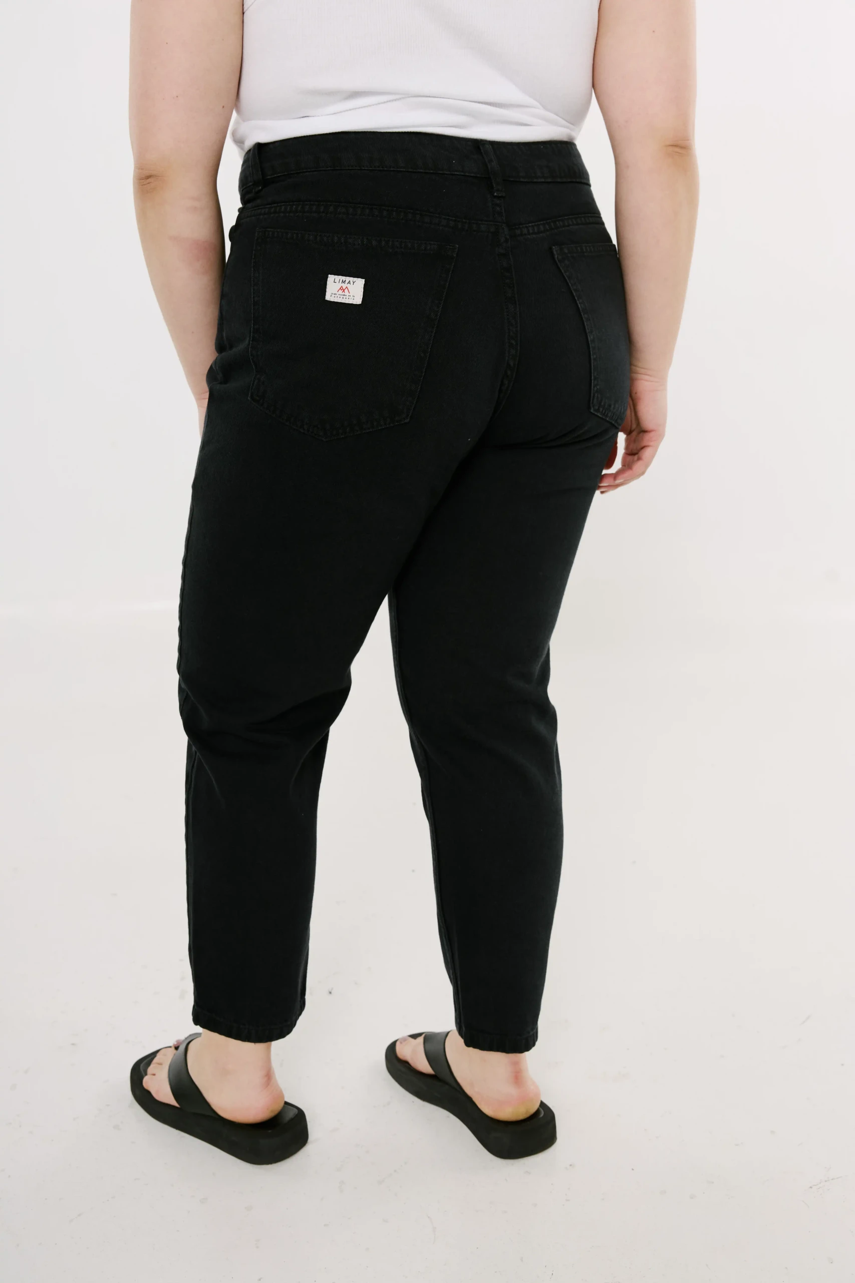 Jean confeccionado en denim negro 100% algodón 11 oz con costuras a tono.