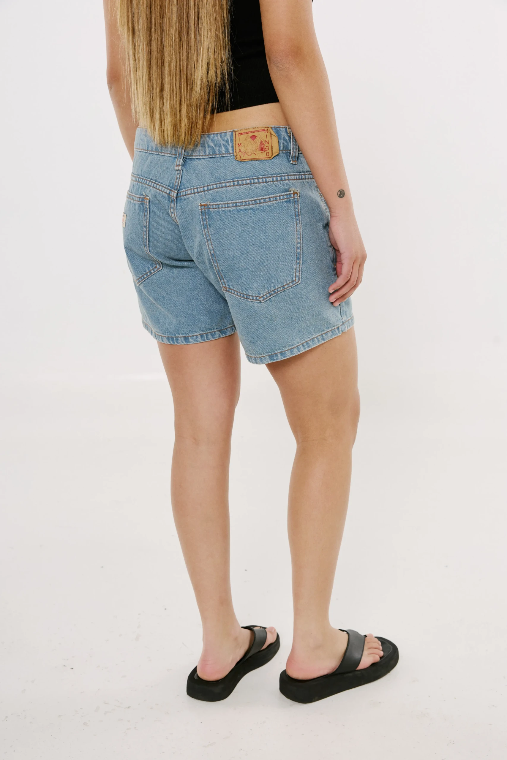 Tiro medio, calce relajado y largo de una bermuda corta a mitad de muslo.