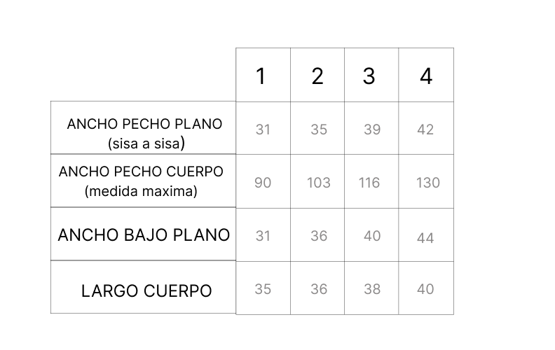El contorno de pecho que figura en la tabla de talles corresponde al contorno de pecho/espalda a la altura de abajo de la axila, donde quedaría el escote del top. Tené en cuenta que es la medida máxima que elastiza a esa altura. En la parte del busto la elasticidad es mayor. Si tenés alguna duda sobre qué talle sos consultanos!