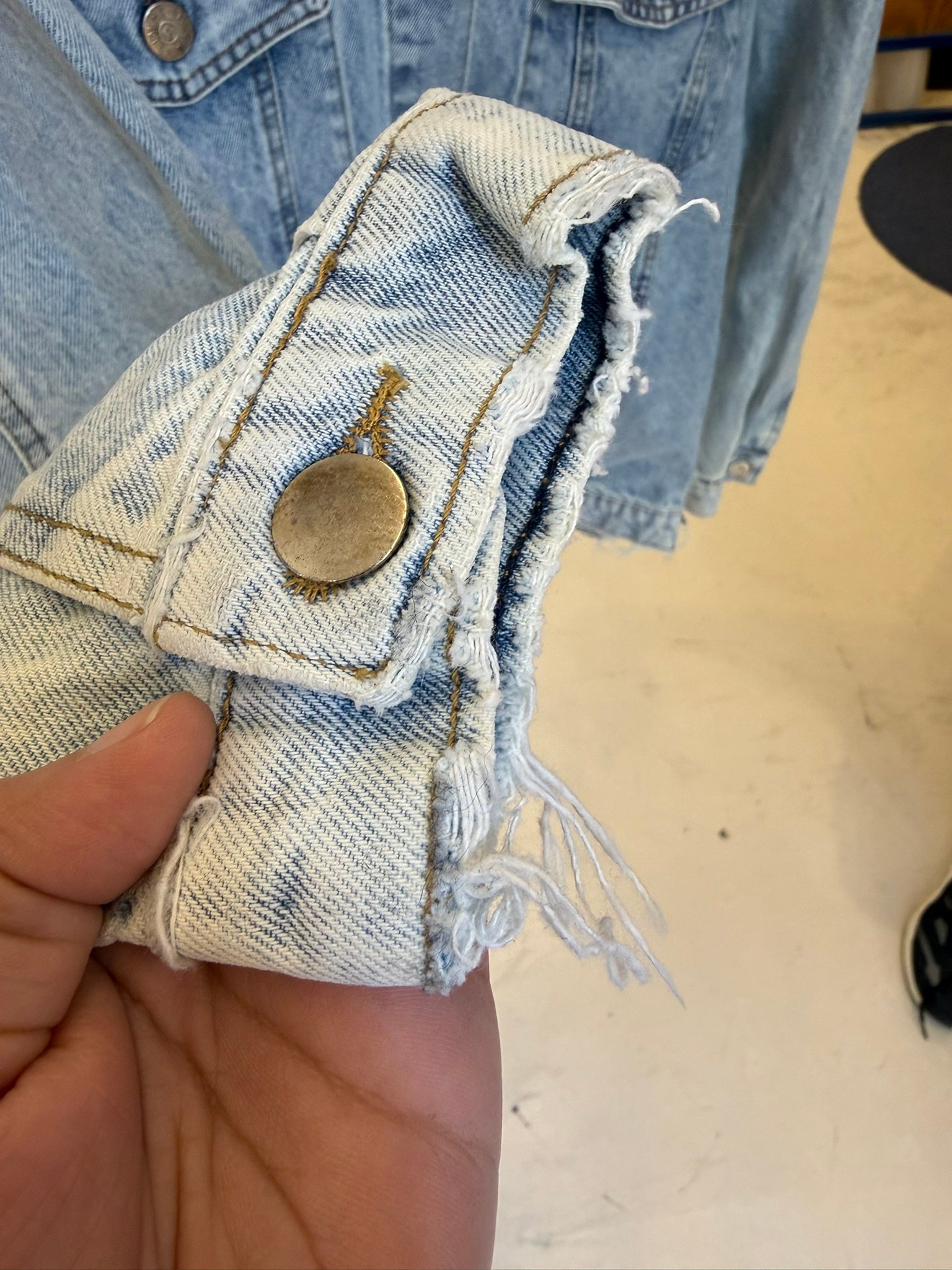Falla: tela desflecada en puños y cadera.